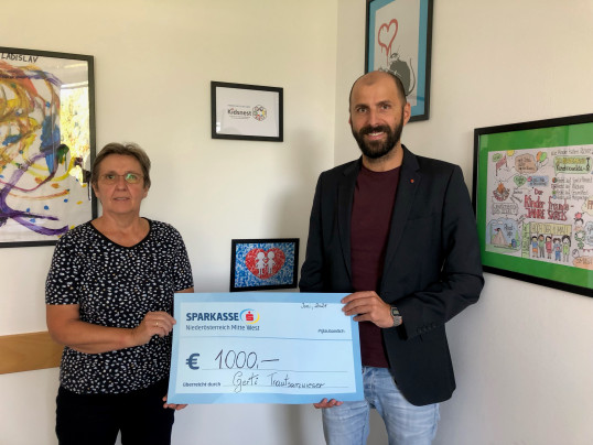 Durch eine großartige Sammelaktion unserer Mitarbeiterin Gerti Trautsamwieser wurden 1000 Euro für den Kinder- und Jugendschutz an unseren Geschäftsführer Günther Haas übergeben.